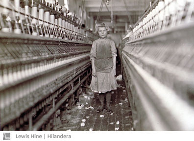Lewis Hine, a principios de siglo, fue designado fotógrafo del Comité Nacional sobre Trabajo Infantil. Sus trabajos sobre los niños que trabajaban en los molinos de algodón y en las minas contribuyó a que se proscribiera la mano de obra infantil. “Quizá empecemos a cansarnos de ver fotos de niños en el trabajo - dijo Hine a los asistentes en muchas de sus conferencias- pero os propongo que cansemos a todo el país con este asunto de manera que cuando llegue el momento de llevar acciones adelante, estas fotos sean solamente un recuerdo del pasado”. (Ledo Andion, 1998, pág. 76)
